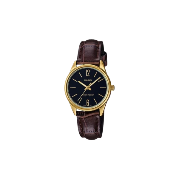 Casio LTP-V005GL-1B Black Dial Brown Leather Band