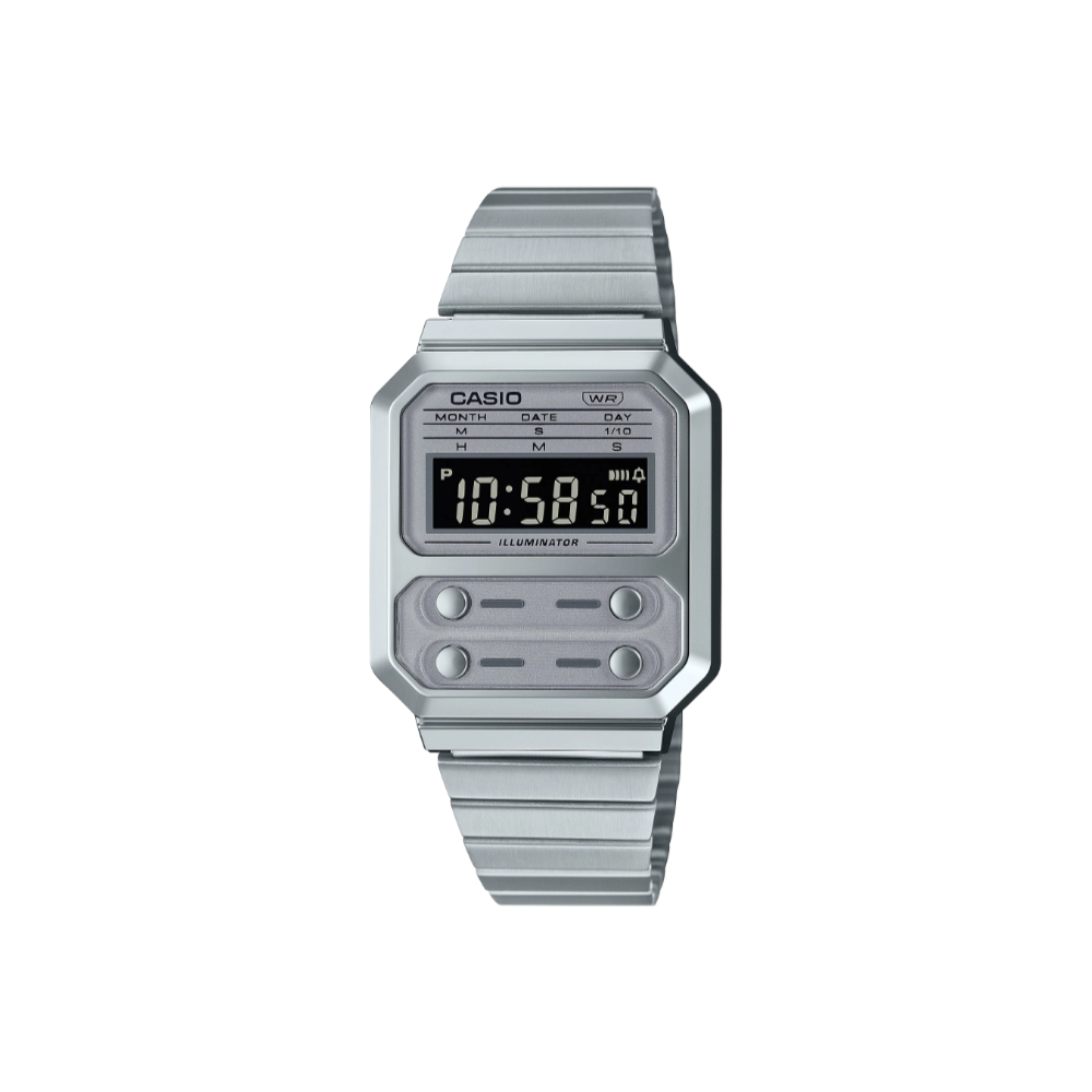 Casio A100WE-7B Digital All Silver Stainless Steel Band