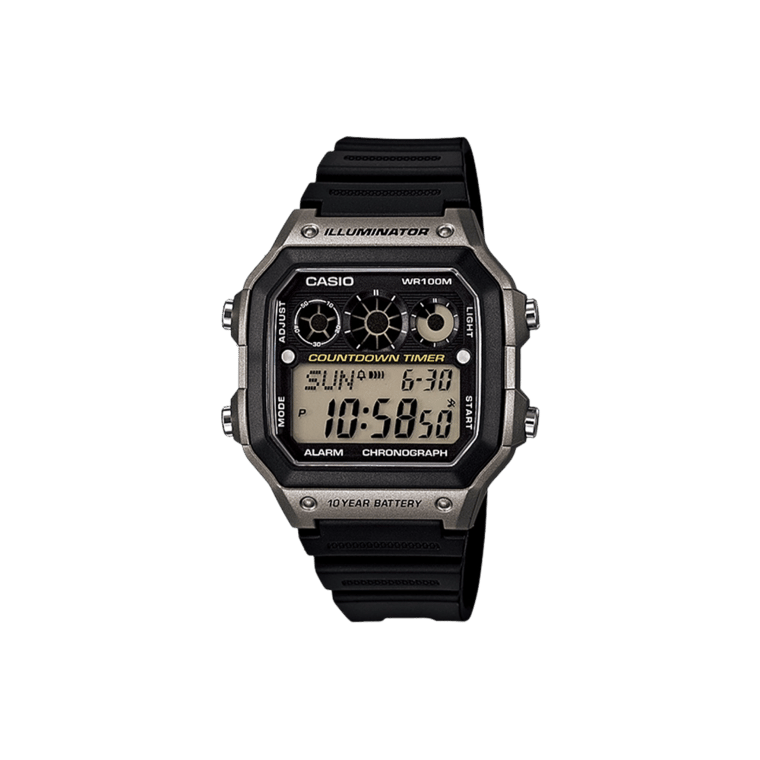 The Casio AE-1300WH-8AV is a versatile digital timepiece designed for both functionality and durability. Encased in a 45mm by 42.1mm resin case with a thickness of 12.5mm, it offers a lightweight profile at just 40 grams. The black resin band ensures a comfortable fit for daily wear.