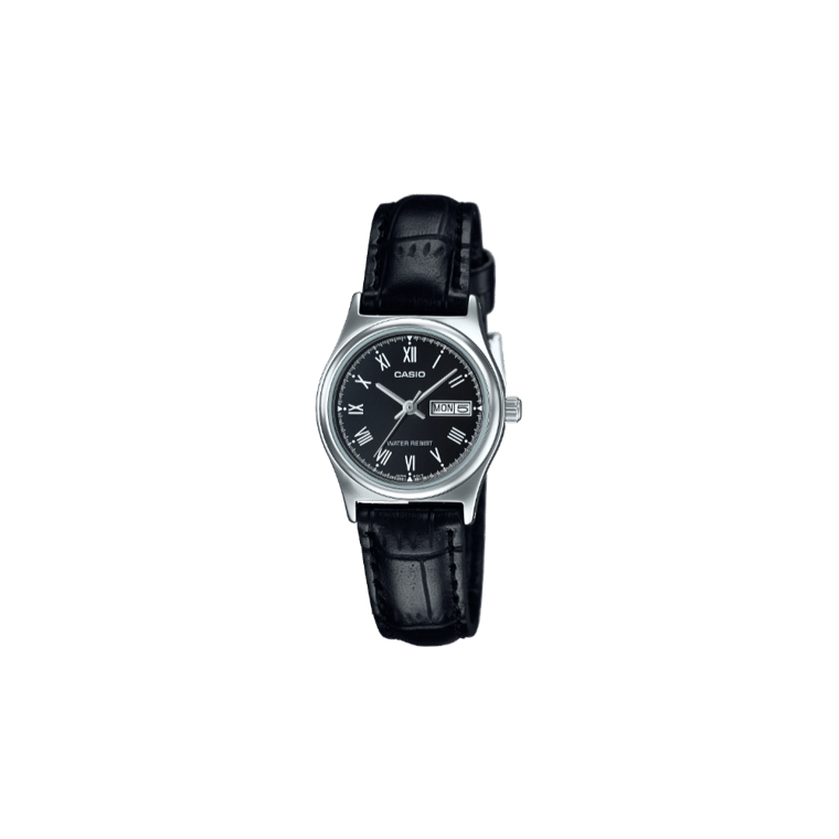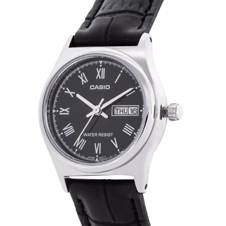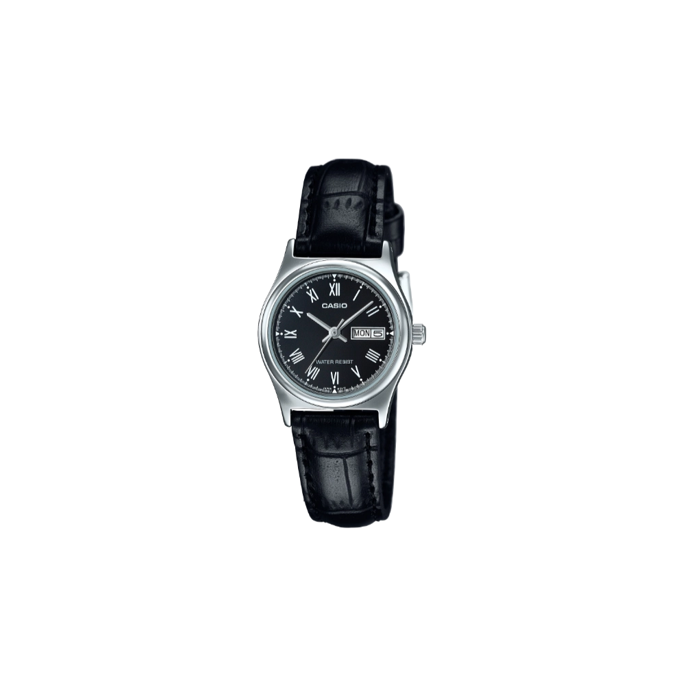 Casio LTP-V006L-1B Day-Date Black Dial Leather Band