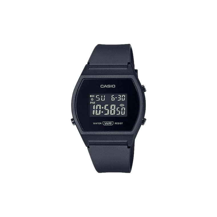 The Casio LW-204-1B presents a minimalist design with its all-black resin case and strap, measuring 38.9mm in length, 35mm in width, and a slim 9.4mm thickness. Weighing just 24 grams, it offers a lightweight feel on the wrist. The digital display includes a 1/100-second stopwatch, daily alarm, and a countdown timer, all illuminated by an LED backlight for visibility in low-light conditions. With 50-meter water resistance, it’s suitable for daily use and light swimming. The watch operates on a CR2016 battery, providing an approximate three-year lifespan. Its unisex design and practical features make it a versatile choice for everyday wear.
