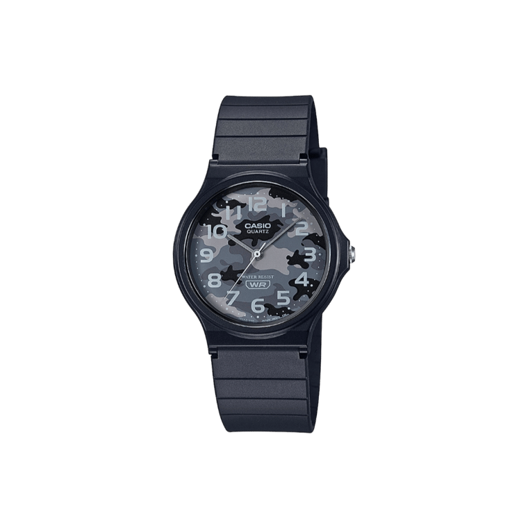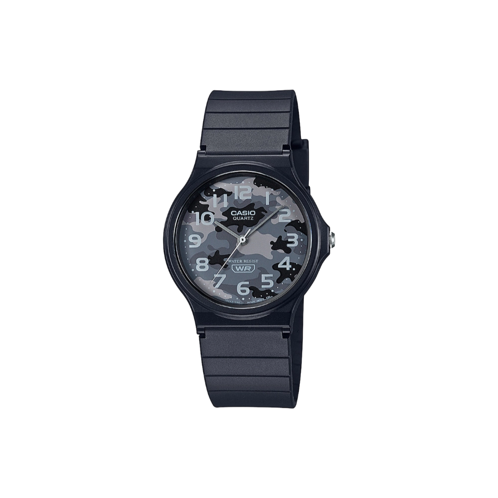 Casio MQ24-8CL Casual Black Rubber Strap Grey Camo Dial 3-Hand Analog