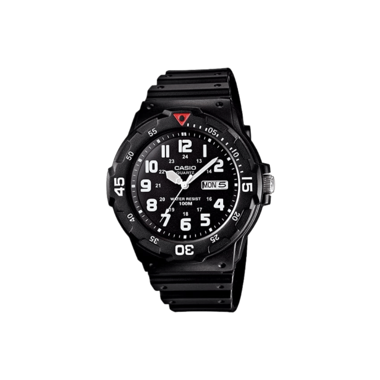 Weighing just 39 grams, the MRW200H-1BV is lightweight and comfortable for extended wear. Its durable resin construction ensures longevity, while the 18mm resin band provides a secure fit. The watch maintains an accuracy of ±20 seconds per month, ensuring dependable timekeeping.