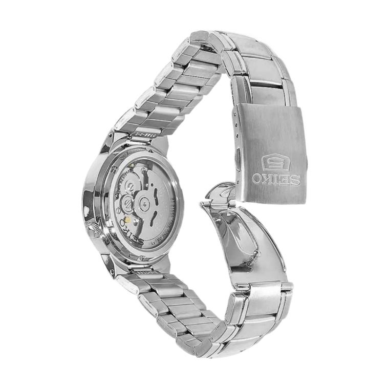 Crafted for durability, the scratch-resistant hardlex crystal keeps the watch face pristine, while the skeleton case back showcases the intricate movement within. With a case size that comfortably fits the wrist, this watch is perfect for those who appreciate a casual yet polished aesthetic.