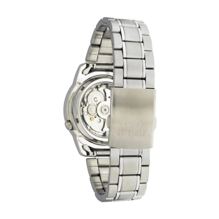 Key features include a date and day display at the 3 o’clock position, along with a reliable Seiko caliber 7S26 movement that offers a 40-hour power reserve. With scratch-resistant Hardlex crystal and water resistance up to 30 meters, this watch is designed for everyday wear.