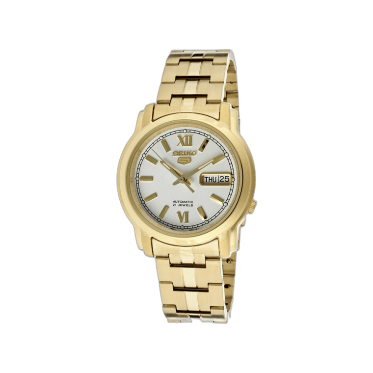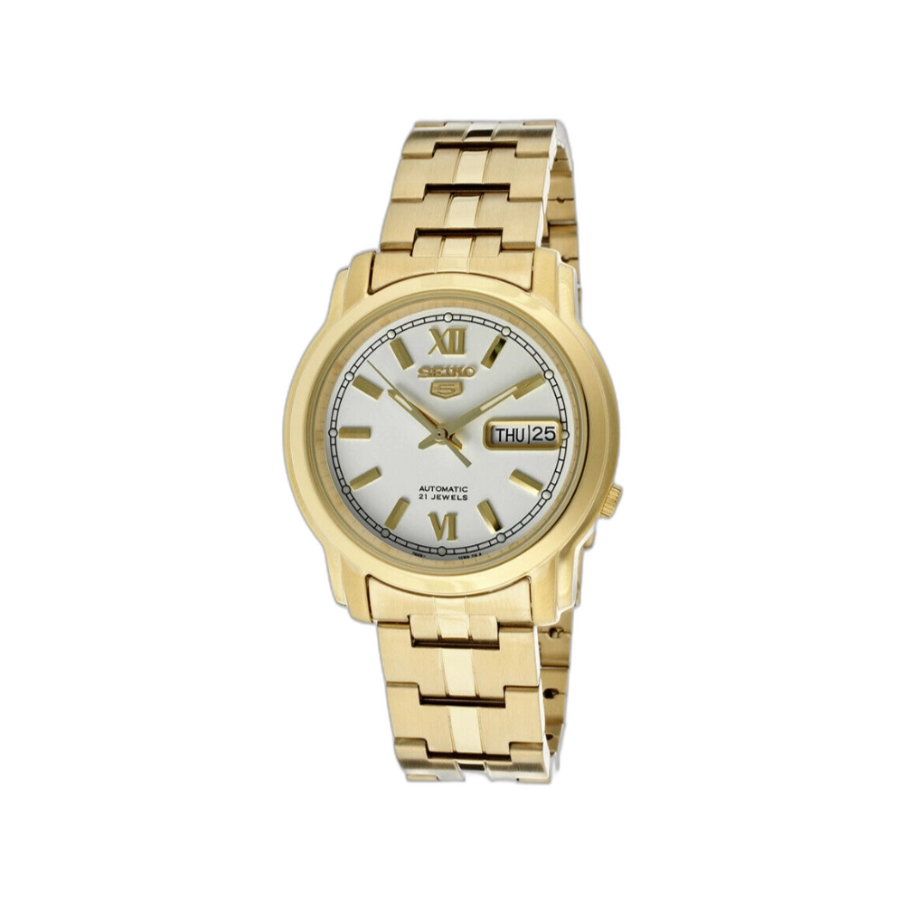 The Seiko 5 SNKL58 is a distinguished timepiece that seamlessly blends functionality with timeless design. Encased in a yellow gold-plated stainless steel body measuring 38mm in diameter and 11mm in thickness, it offers a balanced presence suitable for various occasions.